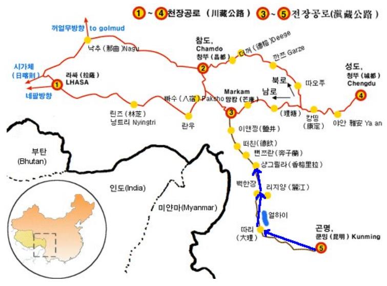 차마고도(茶馬古道)는 중국의 티베트 지역과 네팔, 인도, 부탄 등과 연결되는 고대의 상업 및 순례 길입니다. 이 도로는 주로 차와 말, 양털, 소금 등의 교역을 위해 사용되었습니다. 차마고도는 단순한 물리적 경로가 아니라, 여러 민족과 문화가 교류하는 통로로서의 의미를 지니고 있습니다. 현재는 많은 여행자들이 이 길을 따라 트레킹을 하며 그곳의 아름다운 자연과 풍부한 문화유산을 체험하고 있습니다.